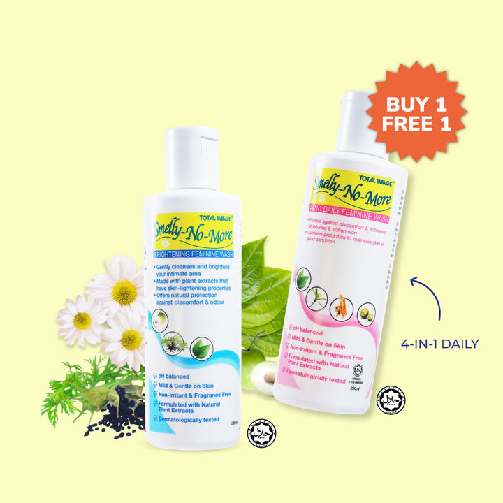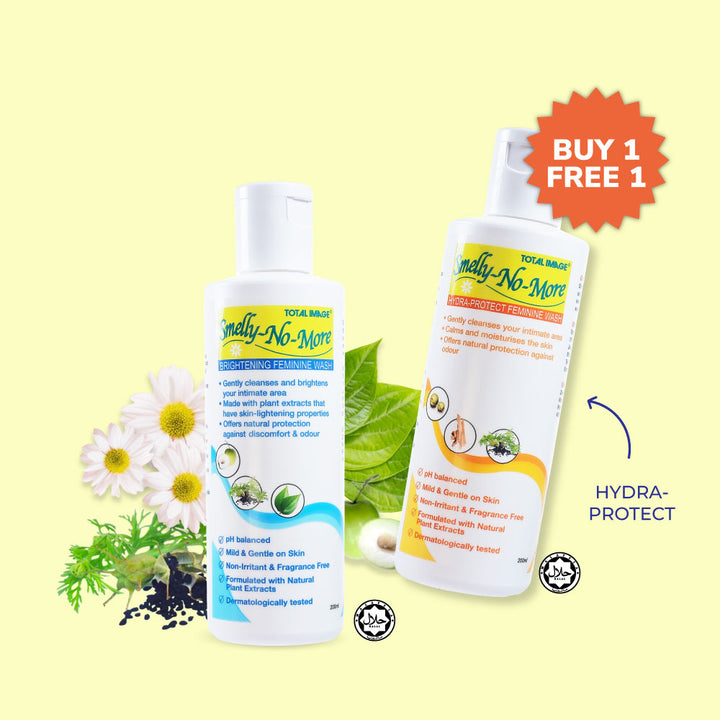 Smelly No More Brightening Feminine Wash, formulated with natural plant extracts (Bidara, Habbatus Sauda and Daun Sirih), gently cleanses your intimate area and deodorides unpleasant odour plus brightens your intimate area. Safe for daily use to promotes confidence.