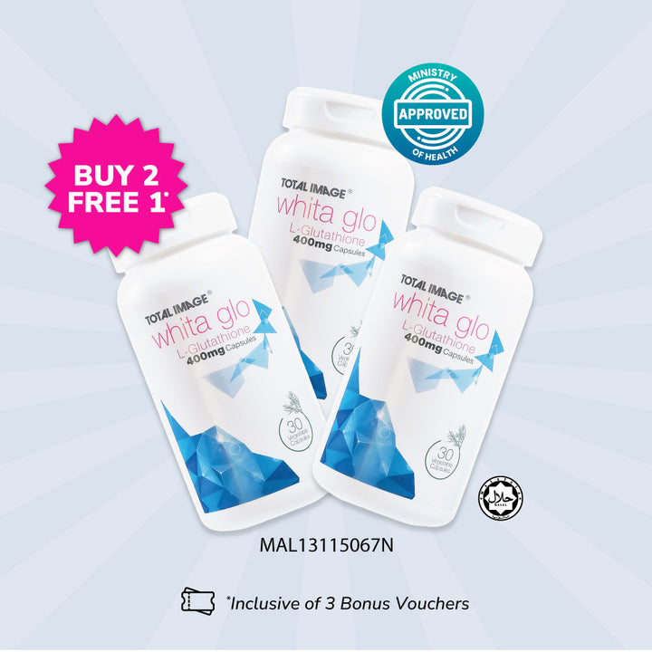 As L-Glutathione consists of three (3) Amino Acids (L-Glutamic Acid, L-Cysteine and Glycine), the low dosage intake may not be sufficient to be absorbed by the body. Therefore, a daily dosage of 400mg is recommended to provide benefits. You may also take 2 capsules of Total Image Whita Glo L-Glutathione daily for faster results.